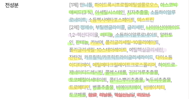 - [1제] 만니톨: 당류 성분으로 동결 건조 파우더의 형태를 유지하며 수분을 결합함