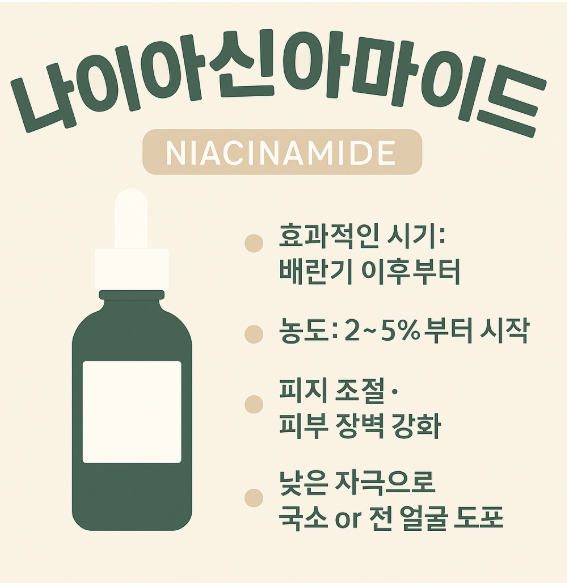 결국, 나이아신아마이드 화장품은 적절한 시기, 적절한 농도, 올바른 사용 순서를 지키는 것이 핵심입니다.