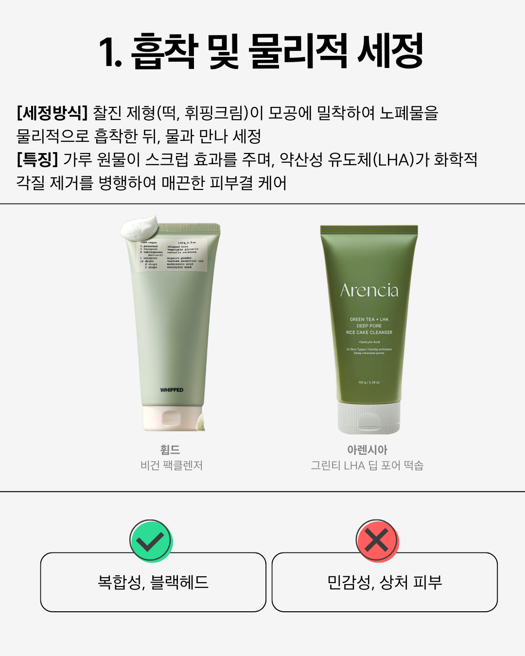 해당 제품: 휩드 비건 팩클렌저 [머그트리], 아렌시아 그린티 LHA 딥 포어 떡솝