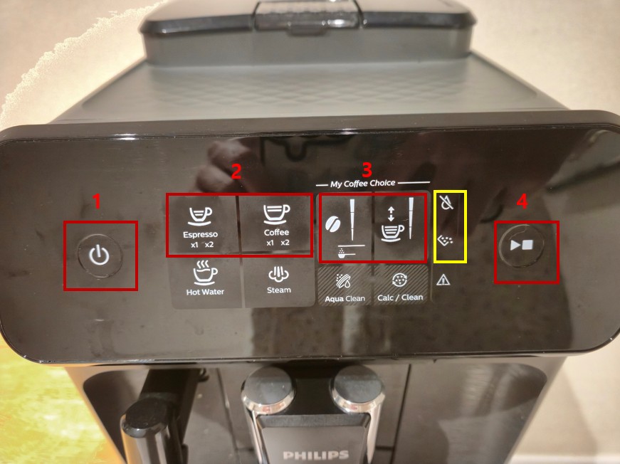 step3. 원두분쇄 및 물 양 조절하는 버튼 선택